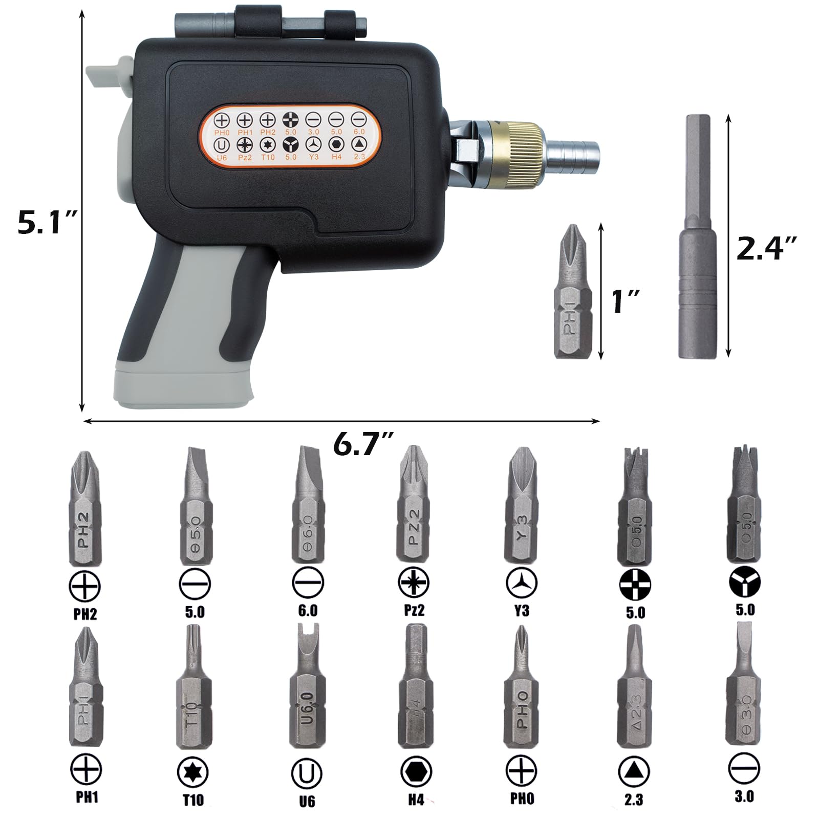 【5-Position & 180° Rotary】The screwdriver is designed with 180° rotation, button controls enable you to pivot the screwdriver bit to adjust 5 angles.Which increase torque or save effort by changing direction in special environments and crazy spaces.